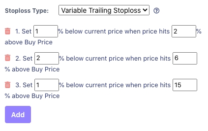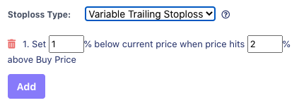 Variable Trailing Stoploss allows you to have a combination of Absolute Stoploss and Trailing Stoploss. Simply set the first level as